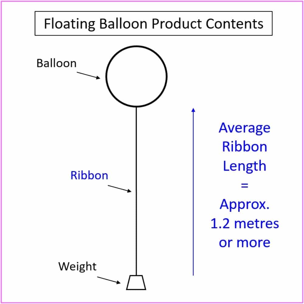 We will attach a long length of colourful ribbon and a weight on the end of the ribbon (see extra product image), so the Balloon can float in the air while also be "anchored" to the floor or on top of furniture (and easily moveable).